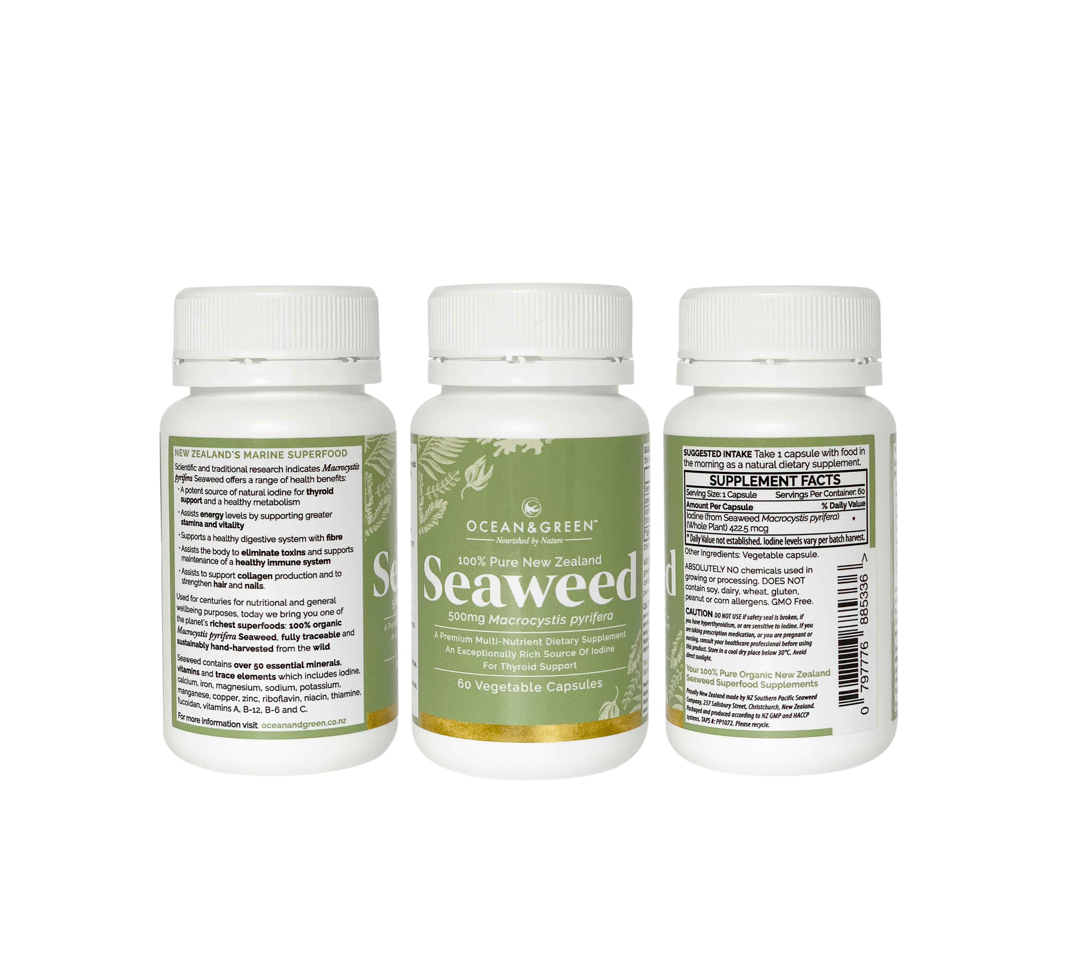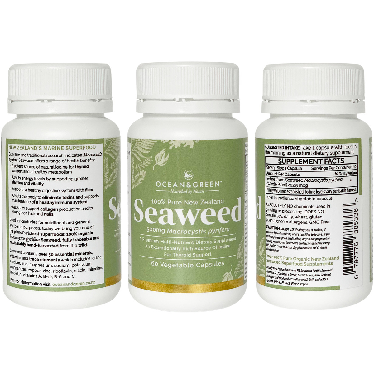 - Ocean and Green seaweed supplements are 100% pure Macrocystis New Zealand seaweed, a ‘natural superfood’, the most powerful and nutrient-rich plant on the planet.